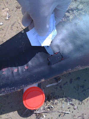 Ο κ. Φρατζής τηλεφωνικά μας καθοδήγησε αναλυτικά και με συγκεκριμένο τρόπο λάβαμε δείγματα και φωτογραφίες του νεκρού δελφινιού τα οποία και εστάλησαν στο Ινστιτούτο.