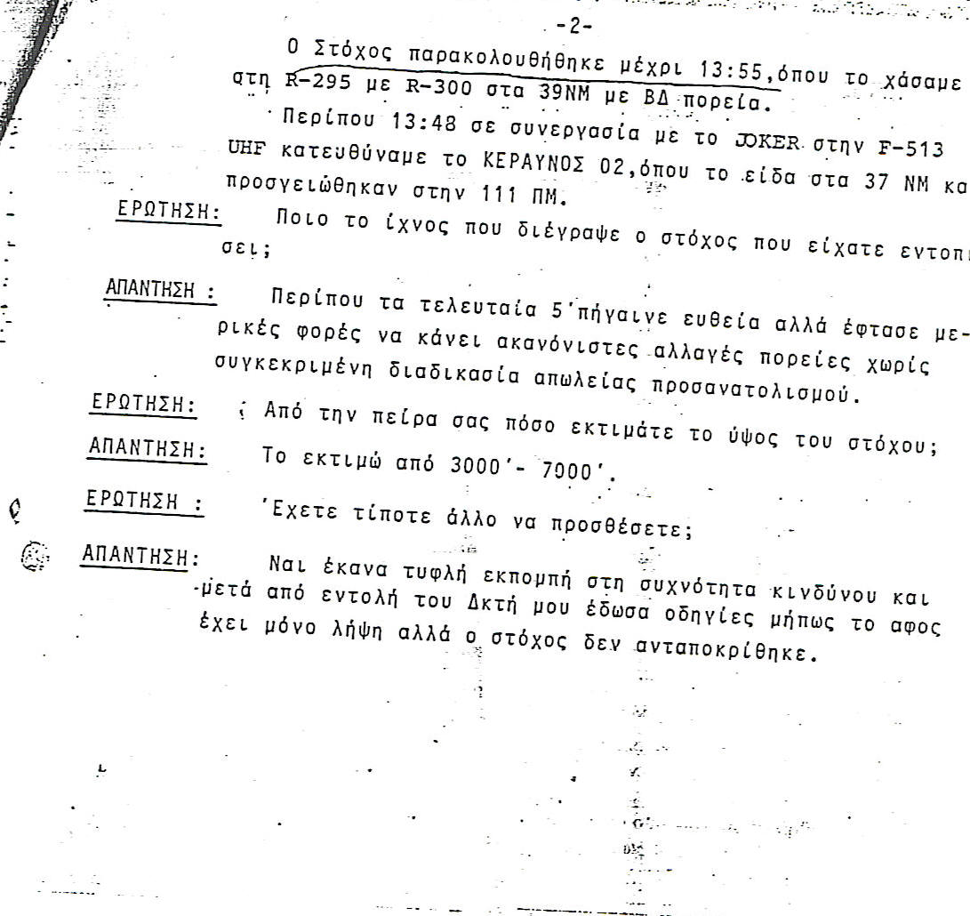 Ολη όμως η μυστικότητα με την οποία η Π.Α. περιέβαλε την επιχείρηση της περισυλλογής νεκρών και συντριμμιών του αεροσκάφους, καθώς και ο αποκλεισμός των δημοσιογράφων από την περιοχή και την Ελευσίνα όπου μεταφέρθηκαν οι νεκροί, προκάλεσε δικαιολογημένα ερωτηματικά και ενδείξεις ότι κάτι περίεργο κρυβόταν πίσω από την ολη ιστορία.Και υπήρξαν συγγενείς των θυμάτων που ακόμα και σήμερα, τέσσερα χρόνια μετά το ατύχημα, ισχυρίζονται με βεβαιότητα σχεδόν ότι η Π.Α. δεν είπε ποτέ την αλήθεια για τα πραγματικά αίτια του ατυχήματος…-