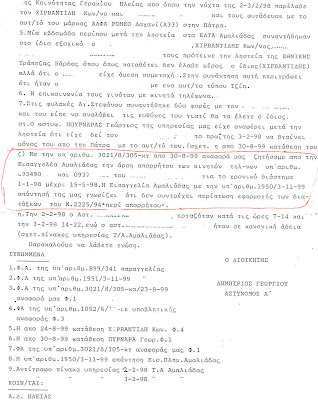 Δημοσιεύουμε την αποκαλυπτική έκθεση «φωτιά» της Αστυνομίας γιά την κατάθεση του γνωστού παράνομου Κώστα Χιρβαντίδη που περιγράφει πως έγινε το κόλπο της ληστείας , τη συμμετοχή των Ηλείων μπάτσων…οι οποίοι απαλλάχθηκαν με Βούλευμα !!! αλλά και την άρνηση της τοπικής εισαγγελίας να σπάσει το απόρρητο της τηλεφωνικής σύνδεσης επίορκου μπάτσου…