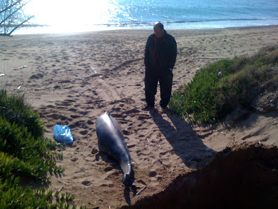 Ενημερώθηκε αμέσως το Λιμεναρχείο Κυλλήνης και το Ινστιτούτο Κητολογικών Ερευνών Πέλαγος http://www.pelagosinstitute.gr/gr/homepage/index.html το οποίο και μας ανέθεσε δίνοντας συγκεκριμένες οδηγίες να συλλέξουμε στοιχεία για το θαλάσσιο θηλαστικό πριν αυτό ταφεί .