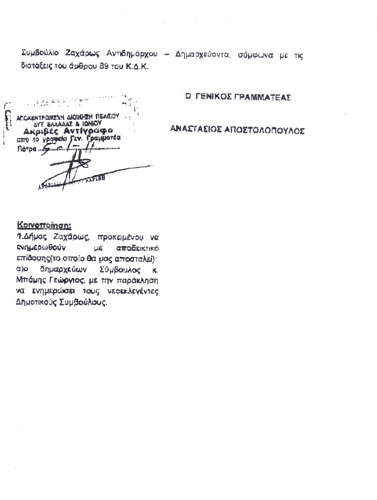 ΜΕ ΝΕΑ ΔΙΑΠΙΣΤΩΤΙΚΗ ΠΡΑΞΗ ΤΟΥ Γ.Γ. ΔΥΤΙΚΗΣ ΕΛΛΑΔΑΣ ΟΡΙΖΕΤΑΙ ΩΣ ΔΗΜΑΡΧΟΣ Ο ΕΚΤΟΣ ΚΑΤΑ ΣΕΙΡΑ ΔΗΜΟΤΙΚΟΣ ΣΥΜΒΟΥΛΟΣ ΤΟΥ ΕΥΡΙΣΚΟΜΕΝΟΥ ΣΕ ΑΡΓΙΑ ΠΑΝΤΑΖΗ ΧΡΟΝΟΠΟΥΛΟΥ…