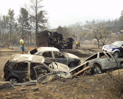 4. Χρησιμοποιήθηκαν παρανόμως, τρεις εποχικοί πυροσβέστες, ως πλήρωμα του καταστραφέντος πυροσβεστικού οχήματος, ενώ θα έπρεπε, οπωσδήποτε και βάσει του νόμου, να υπάρχει, ως επικεφαλής και ένας έμπειρος μόνιμος πυροσβέστης. Αποτέλεσμα του γεγονότος αυτού ήταν, λόγω της απειρίας του πληρώματος, να χάσει την πορεία του το εν λόγω πυροσβεστικό όχημα, να σταθμεύσει παρανόμως στη μέση του δρόμου, να μπλοκαρισθούν στο συγκεκριμένο σημείο 7 επιβατηγά αυτοκίνητα και να καούν επί τόπου, τόσο τα εν λόγω αυτοκίνητα, όσο και οι επιβάτες τους (σύνολο 24 στο σημείο εκείνο).